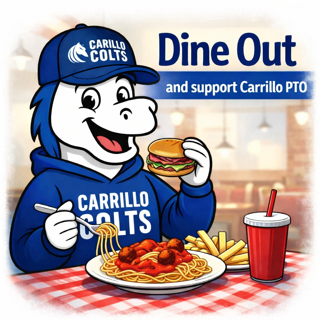 The Carrillo PTO organizes Dine Out fundraisers throughout the school year with local restaurants. On select dates, participating restaurants donate a percentage of their sales back to our school. These events make fundraising simple and enjoyable. Families can dine in or order takeout while supporting both our school and local businesses. Proceeds from Dine Out fundraisers help fund programs, activities, and resources that benefit Carrillo students and teachers.