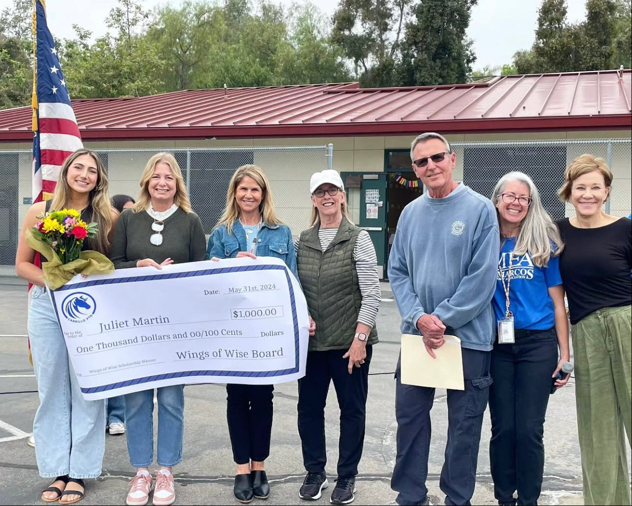 The Wings of Wise Scholarship was created in honor of Carrillo Elementary’s founding principal, Fred Wise. Each year, a one-time $1,000 scholarship is awarded to a graduating high school senior who previously attended Carrillo Elementary.